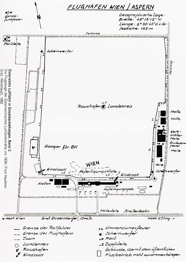 Ende 1955 | Übergabe des Flugplatzes durch die Republik an den Österreichischen-Aero-Club, der diesen letztlich wegen finanzieller Schwierigkeiten an die in Aspern ansässigen Flugvereine (Flughafen Aspern Betriebsgesellschaft FAB) notgedrungen übergeben muss |