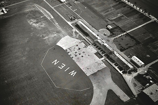Oktober 1938 | Gründung der Wiener Flughafen GmbH. Aspern bleibt Verkehrsflughafen, wird aber Leithorst der Luftwaffe. In der Nähe entstehen mehrere Stützpunkte |