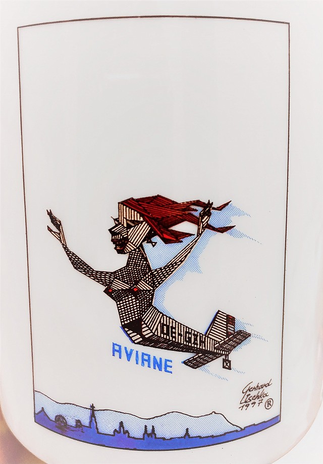 Die am Stempel erkennbare Flugdame AVIANE wurde über Bitte von G. Z. HOLDOSI von Arch. DI Gerhard LISKA Wien entworfen und fand in Sammlerkreisen großen Anklang, wie auch die beiden abgeleiteten Fliegertassen.