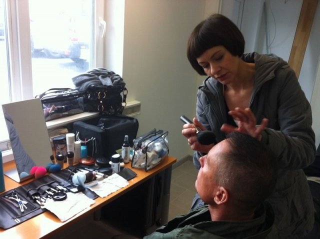 Nach dem Schminken unseres Kunstfluglehrers ging es zur Sache. Martina Janesch und Stefan Schwarz wurden auf das denkbare Notfallszenario des Ausstiegs aus der Maschine während des Fluges und die Fallschirmbedienung eingewiesen, anschließend bestiegen sie die Kunstflugmaschine um einen spektakulären Kunstflug zu erleben.