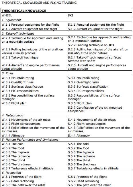 This part should be done before the flight and should cover all the relevant parts of the theoretical knowledge. At least one question for each of the following sections should be asked: (1) specific equipment for a mountain flight (personal and aircraft);