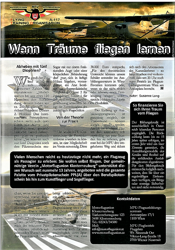 MFU-Flugausbildungszentrum Klosterneuburg: Der ATPL(A) zum Spitzenpreis